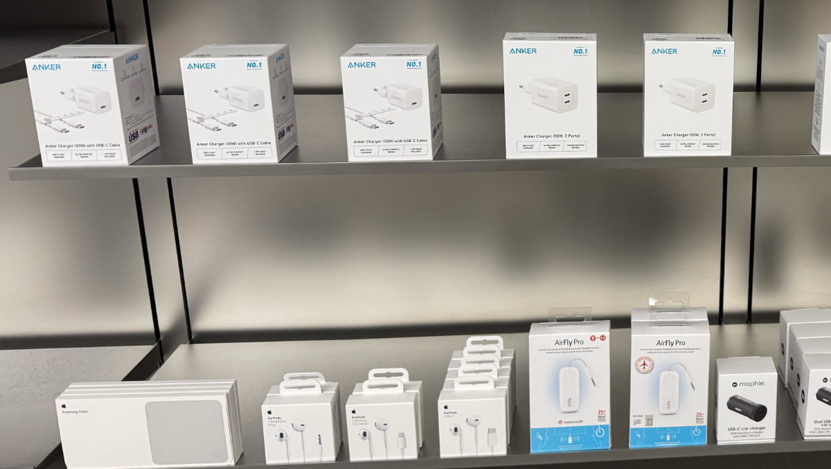 Im Apple Store Hamburg sind die Regale übrigens schon gut mit dem neuen Anker-Zubehör gefüllt, wie unser Foto zeigt: