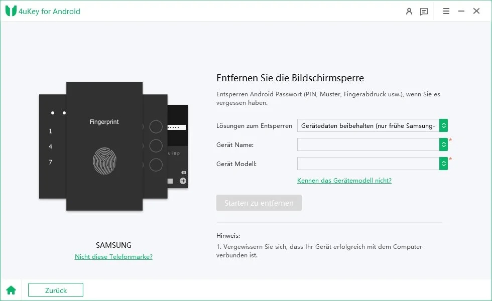 Wenn Ihr Smartphone gesperrt ist und Sie das Passwort vergessen haben, können Sie Tools wie 4uKey for Android verwenden, um den Sperrbildschirm zu umgehen und wieder auf Ihr Gerät zuzugreifen.