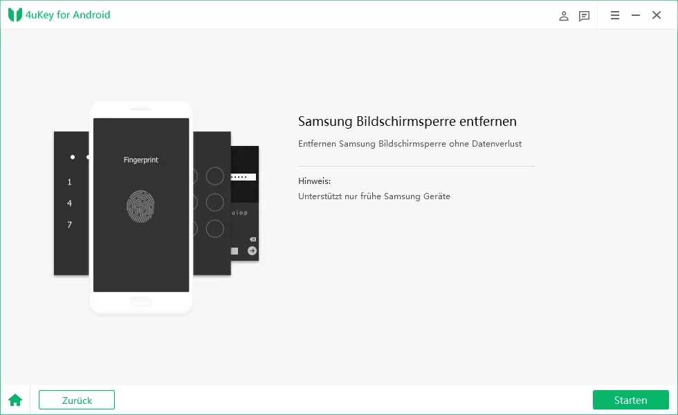 - Schnelle und einfache Entsperrung des Samsung-Starts