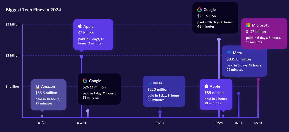 Die erste Strafe wurde verhängt, weil Apple seine Marktmacht im Musikstreaming-Bereich offenbar missbrauchte, indem es Entwickler daran hinderte, Nutzer über günstigere Alternativen zu informieren. Diese Praktiken wurden als Verstoß gegen EU-Kartellrechts-Vorschriften eingestuft.