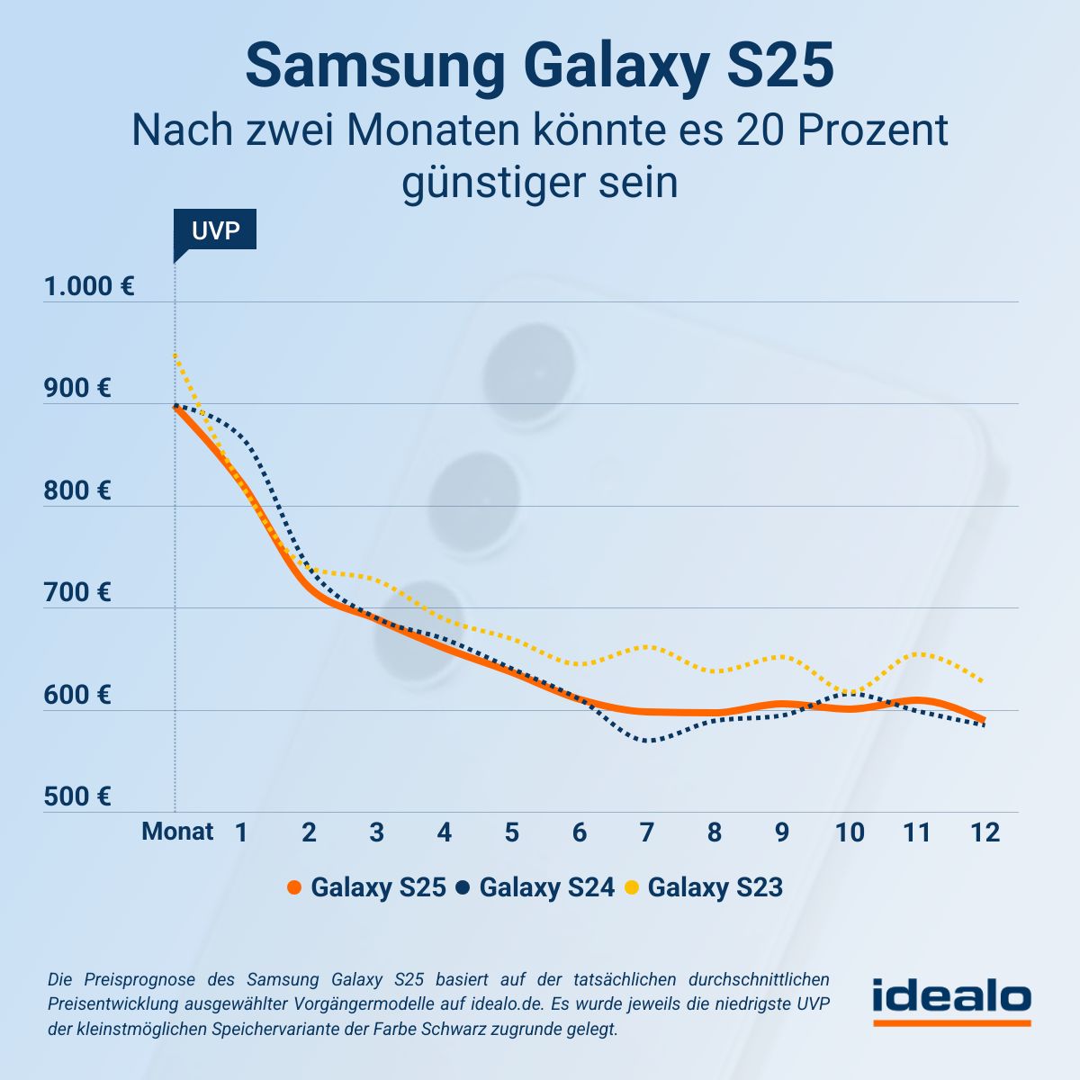Wer einfach kein iPhone kaufen möchte und zwei Monate nach dem Release zuschlägt, könnte bereits 20 % sparen und das S25 für etwa 720 Euro ergattern. Die wirklich großen Ersparnisse winken nach einem halben Jahr mit einem möglichen Preisrückgang von 32 %. Für die ganz Geduldigen: Nach sieben Monaten könnten über 300 Euro gegenüber dem Startpreis gespart werden.