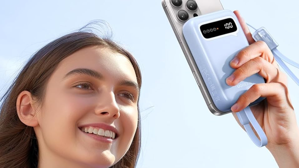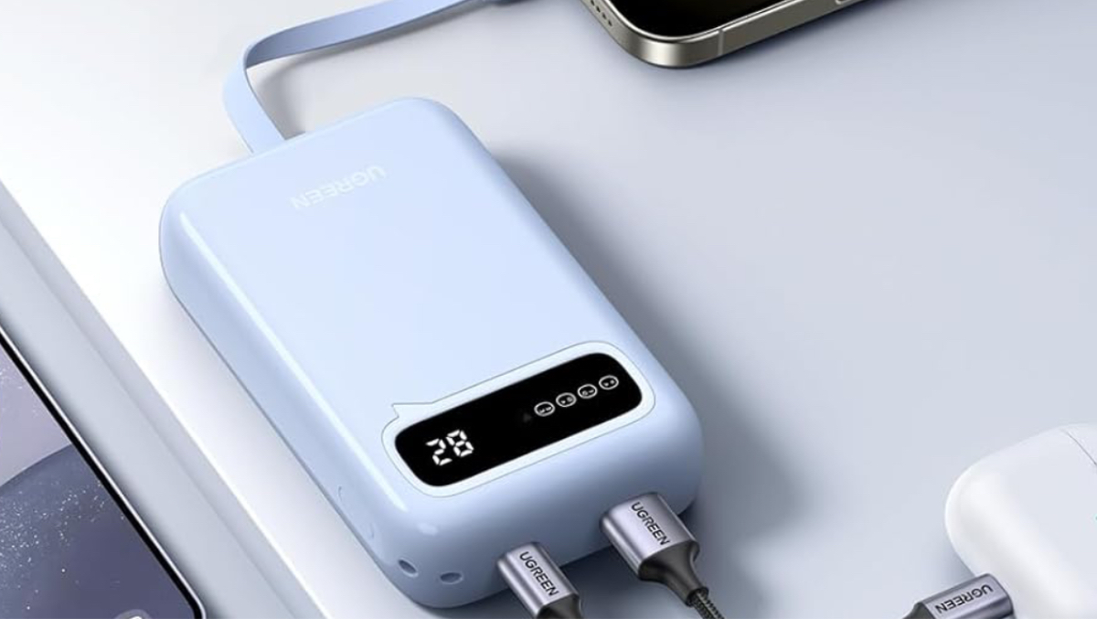 Die neue UGREEN Power Bank besitzt eine Kapazität von 20.000 mAh und verfügt über ein integriertes und fest verbautes USB-C-Kabel. Auch ein USB-C-Port, sowie ein USB-A-Anschluss stehen zur Verfügung.