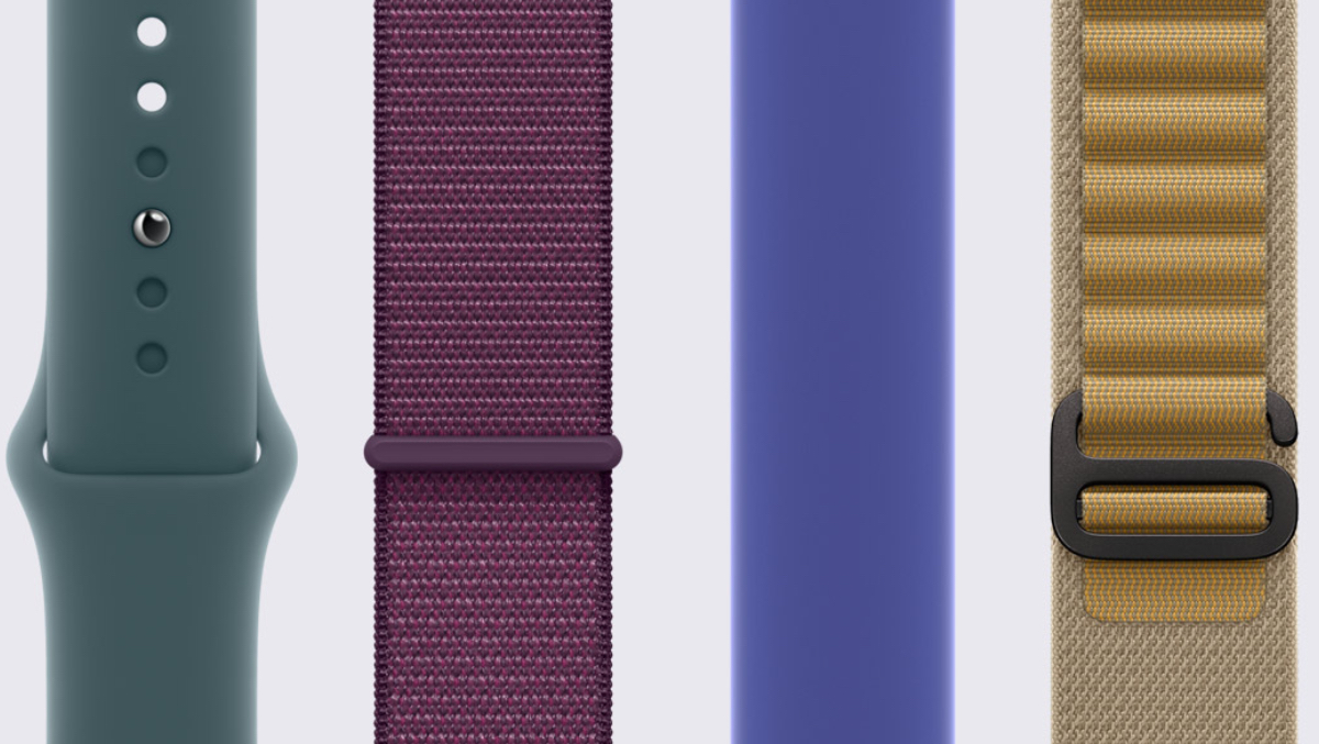 Bei den von Apple selbst angebotenen Apple Watch-Armbändern gibt es folgende Neuheiten: Das „Geflochtene Solo Loop“ in Pfingstrose und Aquamarin, das Solo Loop in Immergrün und Polarlicht-Grün, das Sportarmband in Veilchen und Mandarine sowie das Sport Loop in Salbei-Grün.