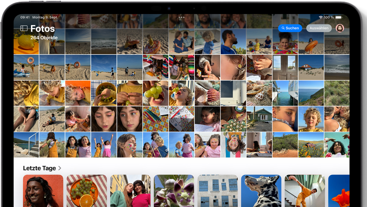 Öffnet die Fotos-App und scrollt nach unten zum Bereich „Rückblicke“. Tippt auf „Erstellen“ und gebt eine Beschreibung wie „Winterurlaub 2021“ oder „Garten-Fest“ ein. Apple Intelligence wählt automatisch die besten Fotos und Videos aus, ordnet sie in Kapiteln und hinterlegt sie mit passender Musik.