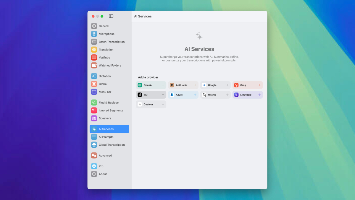 Die Sprechererkennung ist Teil der Pro-Version (59 Euro), die auch Batch-Transkription, Grammatikkorrektur via Cloud-Modelle (OpenAI, Anthropic) und ElevenLabs-Scribe-Support bietet.