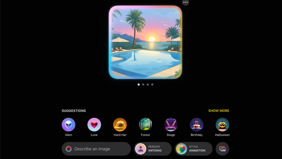 Maßgeschneiderte Emojis werden via Textprompt geliefert: Gebt eine Beschreibung ein und die KI generiert passende Sticker. Noch persönlicher wird’s durch Fotomotive aus der Mediathek.