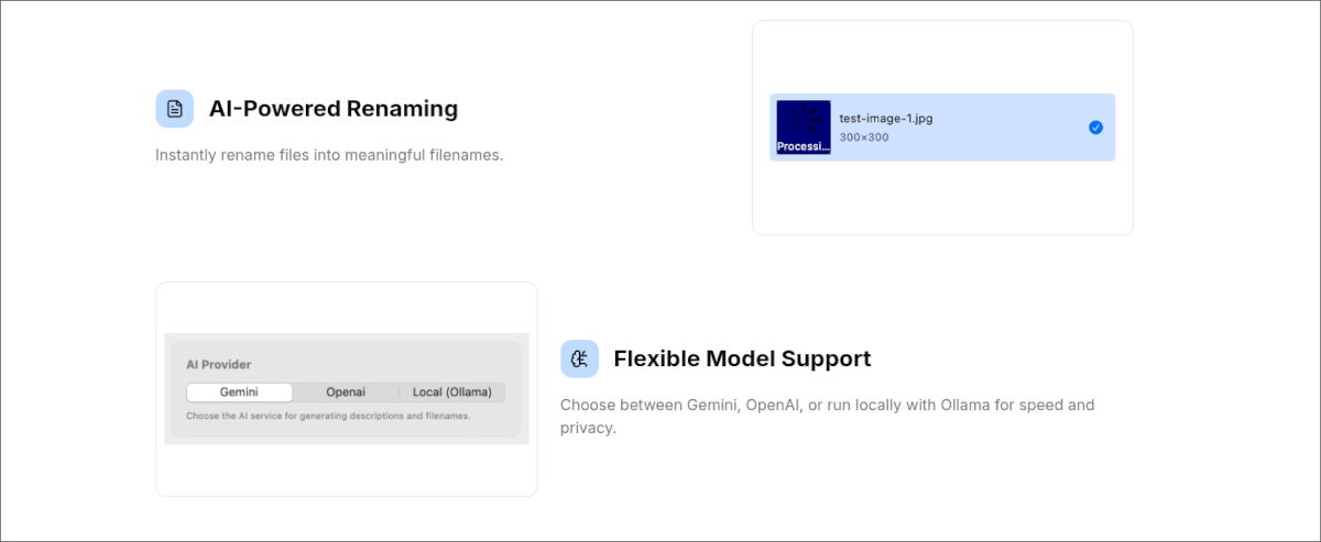 Besonders praktisch ist die KI-gestützte Umbenennung: Ihr gebt euren PDFs, Fotos, Notizen oder Geschäftsdokumenten im Handumdrehen aussagekräftige und leicht auffindbare Namen.