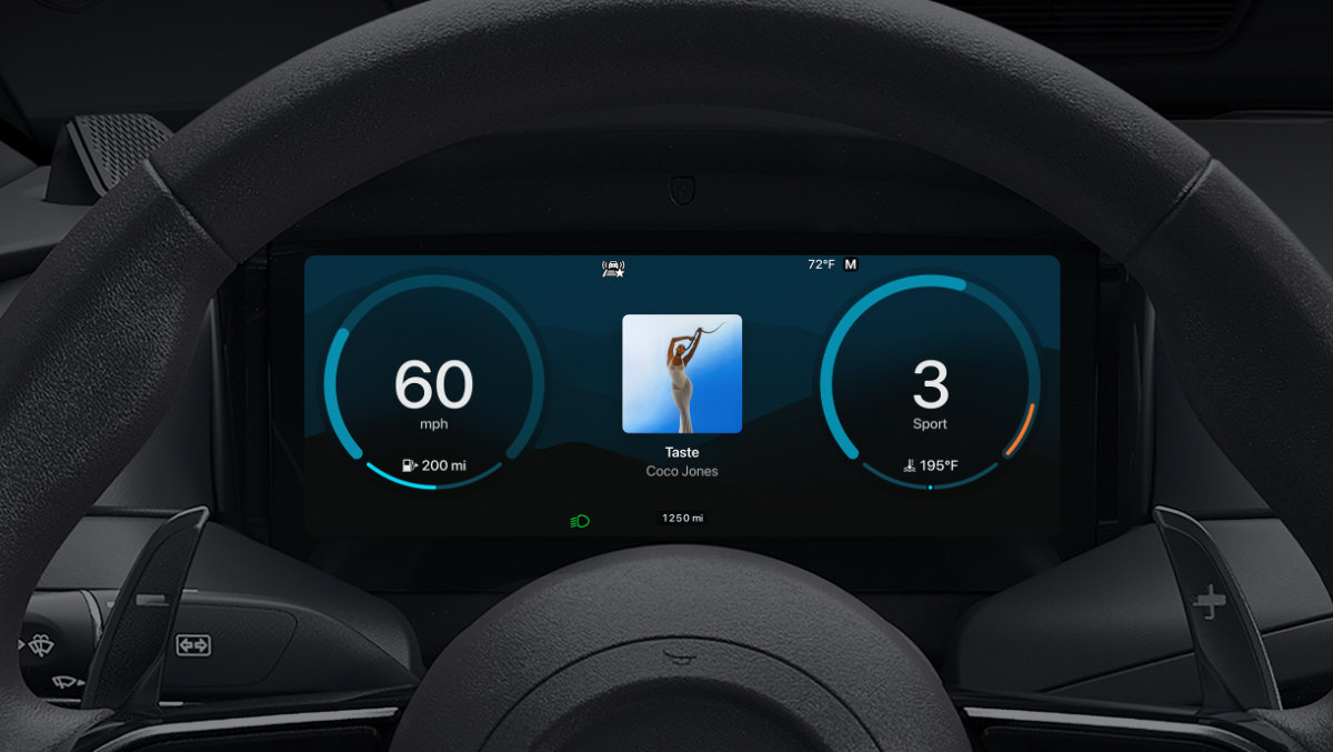 CarPlay Ultra geht weit über die bisherige Smartphone-Anbindung hinaus: Das System übernimmt sämtliche Displays im Fahrzeug, zeigt nicht nur Navigation und Medien, sondern auch fahrzeugspezifische Daten wie Geschwindigkeit, Tankstand oder Klimaanlage an.