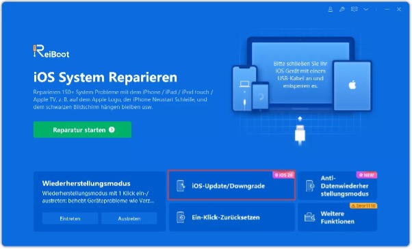 3. Öffnen Sie die ReiBoot-Software. Wählen Sie auf der Hauptoberfläche die Option „Upgrade“ aus.
