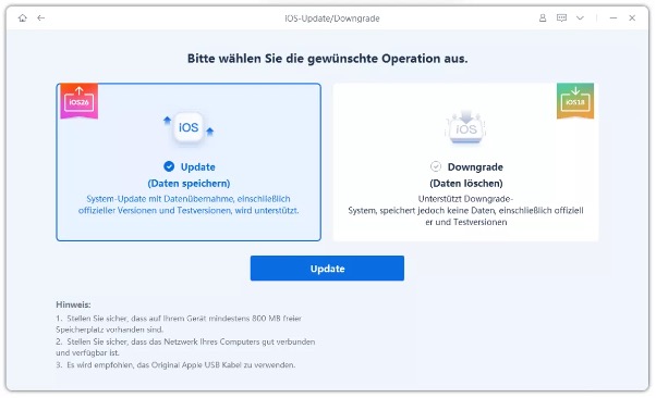 Wenn die Standardmethoden fehlschlagen und Sie Ihr Gerät nicht auf Werkseinstellungen zurücksetzen möchten, können spezialisierte Drittanbieter-Tools eine Lösung bieten. Tenorshare ReiBoot kann Ihnen helfen, die offizielle iOS 26 Firmware herunterzuladen und auf Ihrem Gerät zu installieren, selbst wenn der normale Update-Prozess fehlschlägt.