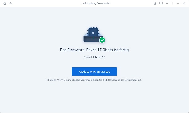 5. Nachdem der Firmware-Download abgeschlossen ist, klicken Sie auf die Schaltfläche „Upgrade starten“. ReiBoot wird Sie dann in den Upgrade-Modus führen.