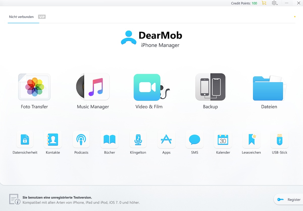 DearMob iPhone Manager bietet eine großzügige Testversion, mit der Sie den gesamten Funktionsumfang vorab testen können.