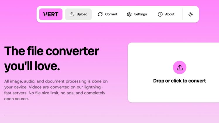 Ein neues Online-Tool namens VERT.sh will das ändern – mit einem Ansatz, der auf Geschwindigkeit, Privatsphäre und Einfachheit setzt. Das Angebot von Hotmilk Studios ist kostenlos nutzbar und läuft auf Spendenbasis.