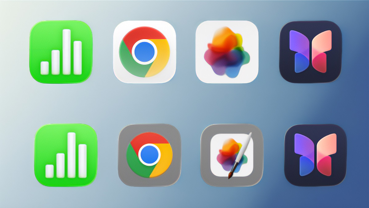 Apps ohne das quadratische „Squircle“-Format landen automatisch in einem grauen Kasten, der die Symbole um zwanzig Prozent verkleinert und deutlich schlechter erkennbar macht.