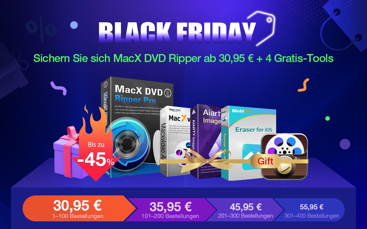 Für eine begrenzte Zeit können Sie sich die lebenslange Lizenz für MacX DVD Ripper Pro zu einem stark reduzierten Frühbucherpreis sichern: