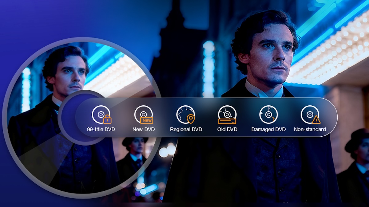 Moderne kommerzielle DVDs – Neuerscheinungen, Disney-Klassiker, Discs mit 99 Titeln, regional gesperrte Filme, Trainings-DVDs – sind bekanntermaßen schwer zu rippen. Aber damit nicht genug: Viele Nutzer haben Probleme mit alten, selbst aufgenommenen DVDs oder zerkratzten Discs, die von Standard-Playern nicht gelesen werden können. Die ständig aktualisierte Engine von MacX DVD Ripper Pro analysiert und wählt automatisch den richtigen Titel aus und umgeht Probleme, die durch Alter, Beschädigungen oder nicht standardmäßige Formatierungen verursacht werden. Dadurch wird der gesamte Vorgang völlig problemlos. Keine zusätzlichen Plugins. Keine Terminalbefehle. Legen Sie einfach Ihre Disc ein und überlassen Sie MacX den Rest.