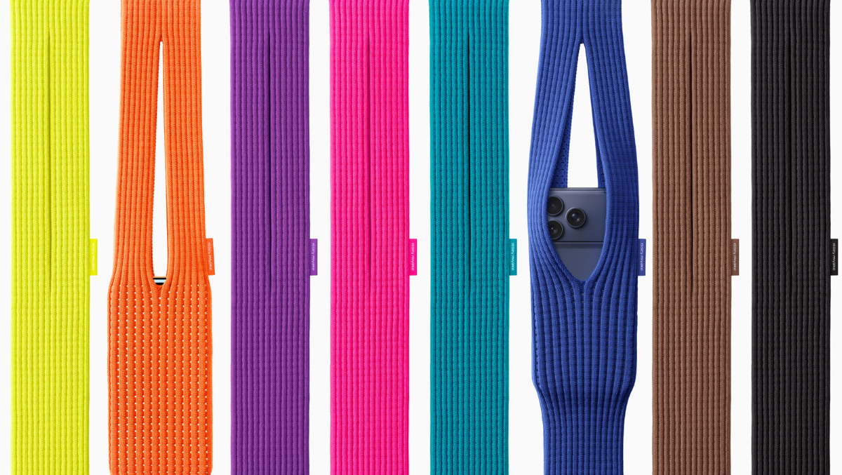 „iPhone Pocket“ ist ein Stück Stoff, das plötzlich zum High-End-Accessoire wird. Das Zubehör umhüllt jedes iPhone „und andere tragbare Teile“ mit edlem Pleats-Gefühl, es trägt sich an kurzen oder langen Riemen – in der Hand oder am Körper.