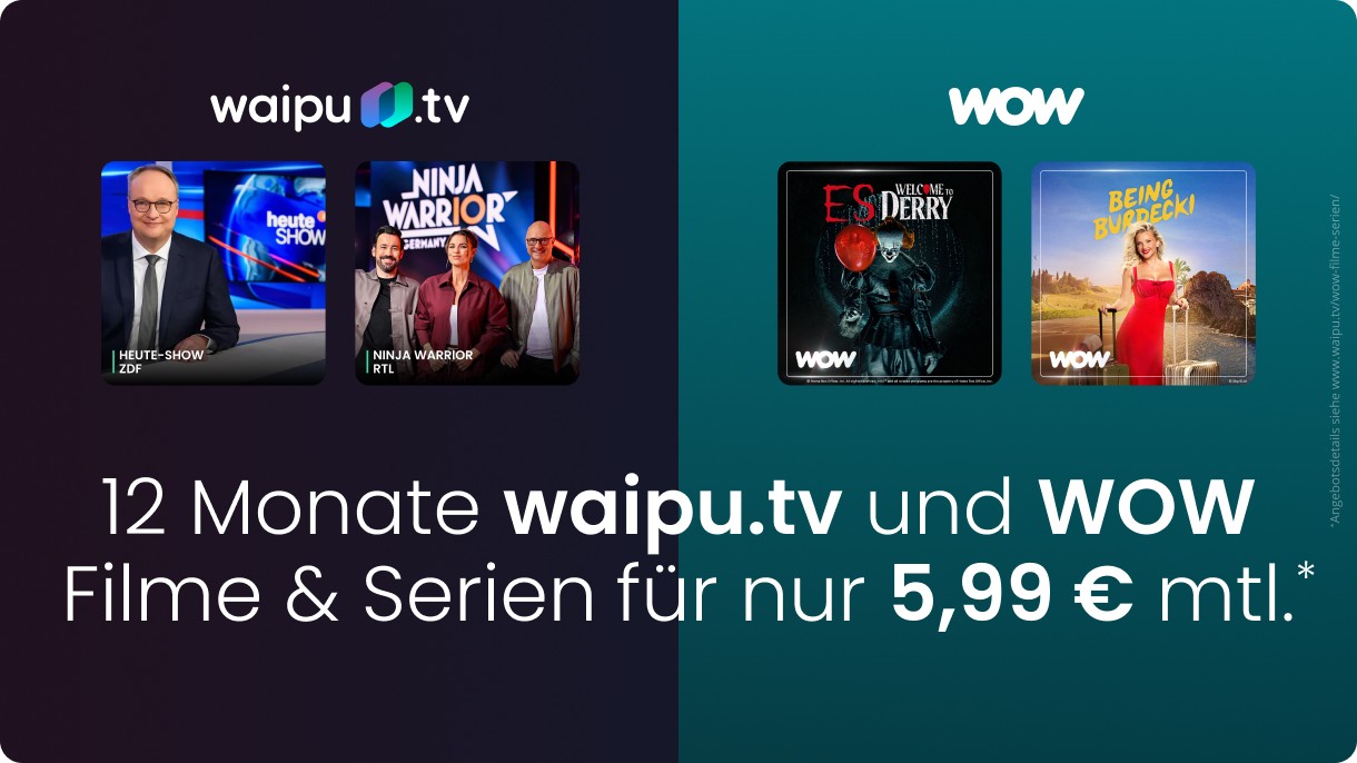 Der Streamingdienst waipu.tv bietet zum Mini-Preis ein Kombi-Paket mit WOW Filme & Serien an.