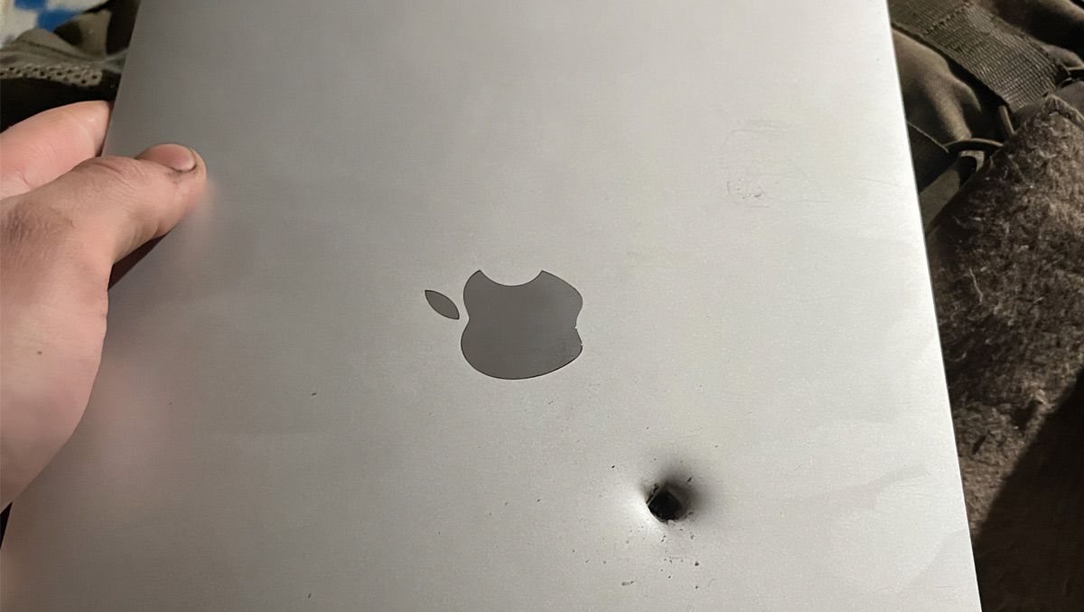 Das Notebook stoppte den Splitter einer Artilleriegranate – und funktioniert anschließend immer noch.