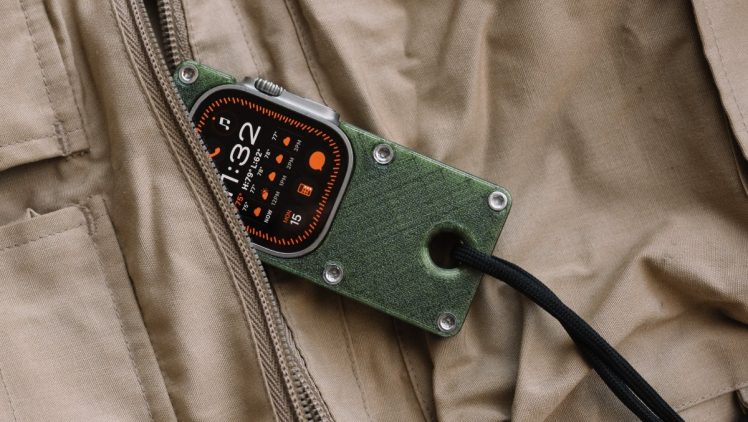 Dank offener Rückseite bleibt kabelloses Laden möglich, ohne die Uhr aus dem Case zu nehmen. Eine integrierte Öse samt Paracord-Band sorgt für zusätzliche Sicherung. Die Hardware-Elemente sind wahlweise in Edelstahl oder Schwarz gehalten.