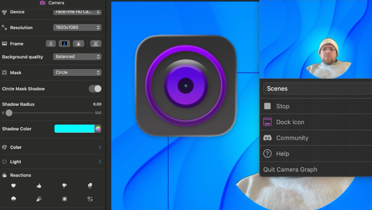 Kamera Graph, die Mac-App für Videoaufnahmen und Livestreams, ist jetzt kostenlos verfügbar.