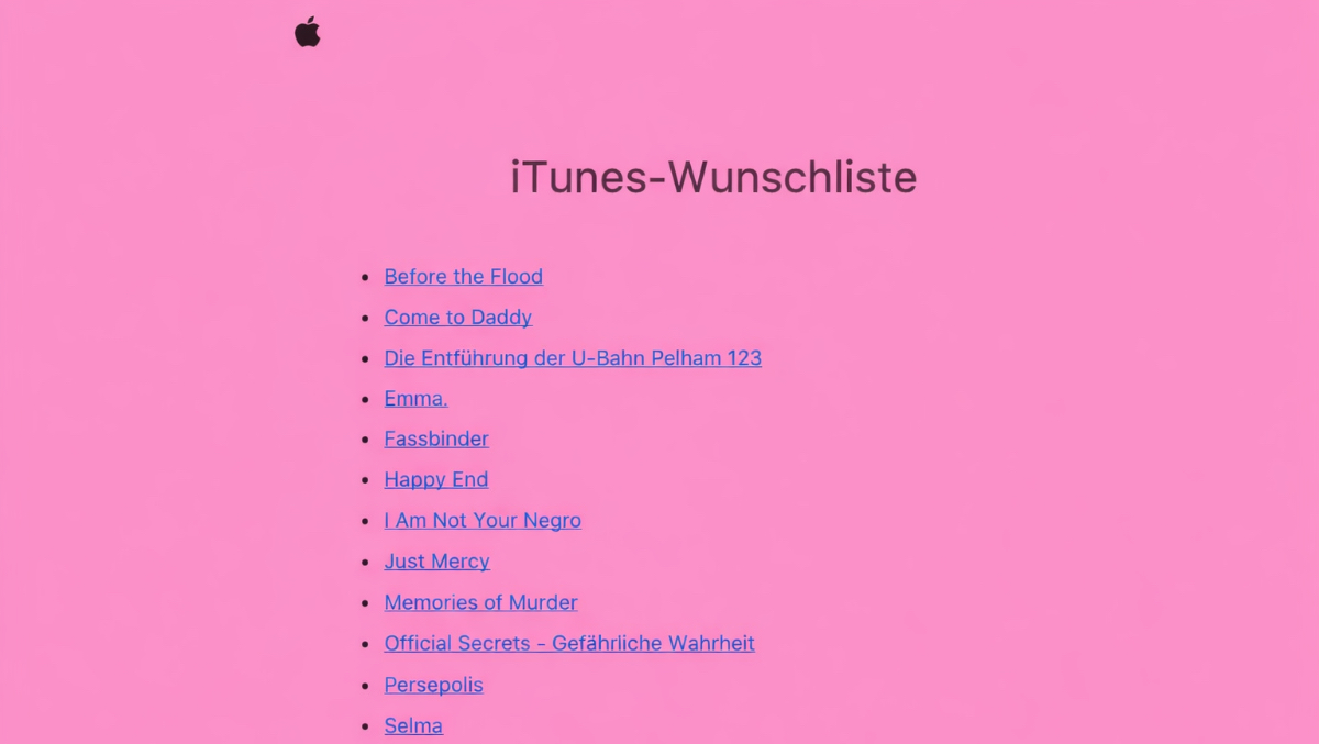 So sieht die Wunschfilm-Liste aus, die euch Apple zumailt