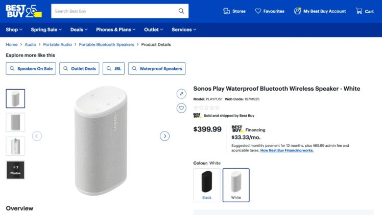 Auf der kanadischen Website von Best Buy ist ein noch nicht offiziell angekündigter Sonos-Lautsprecher aufgetaucht.
